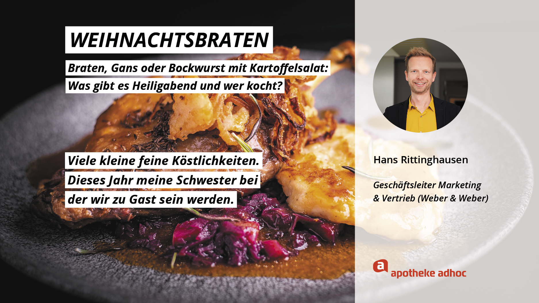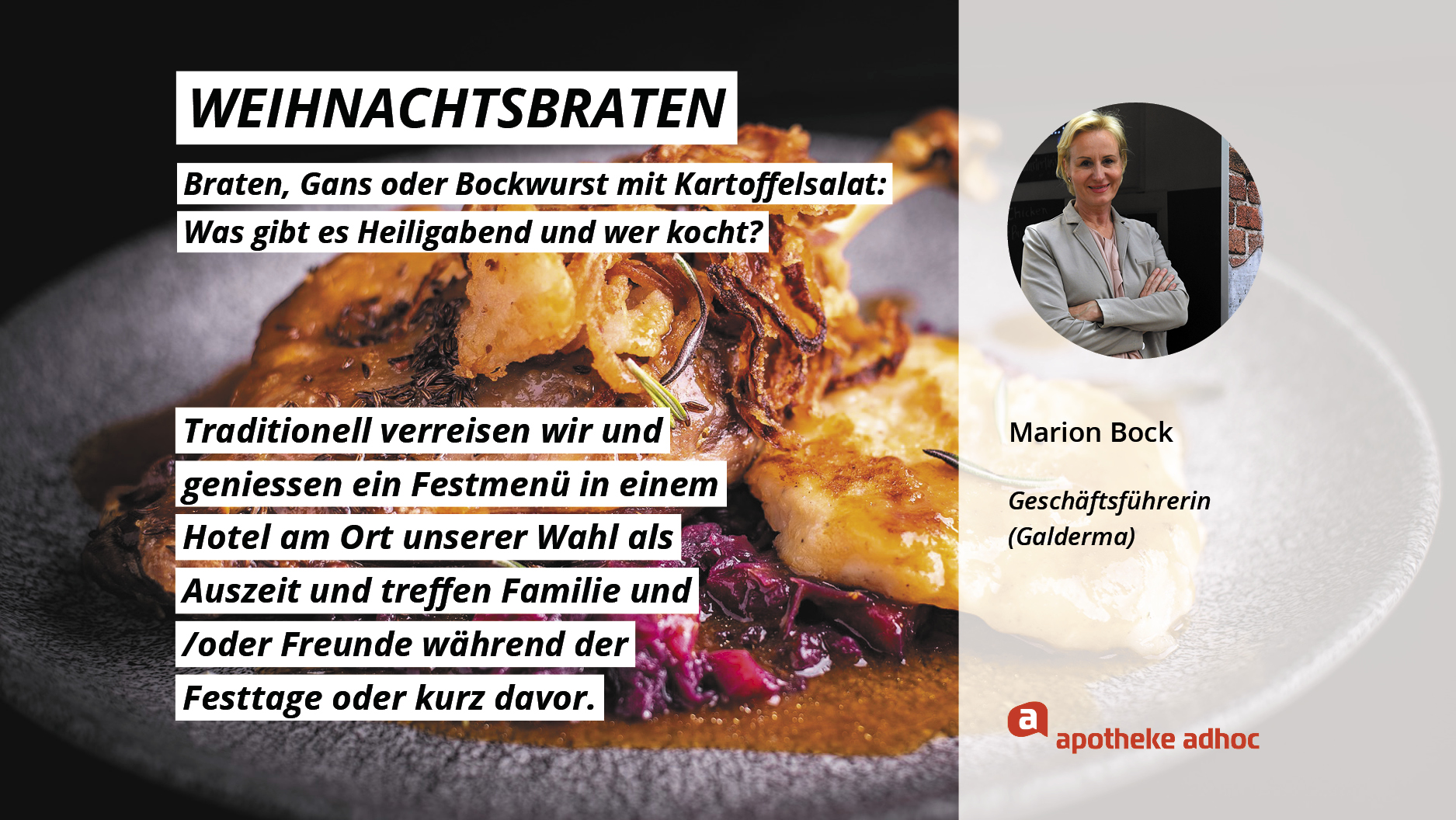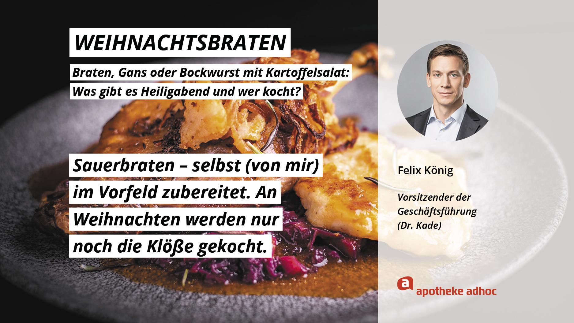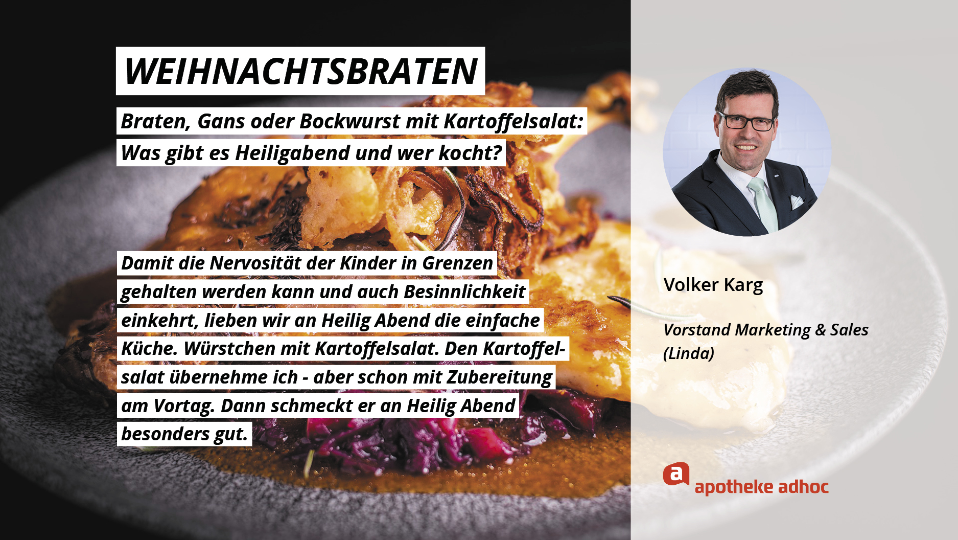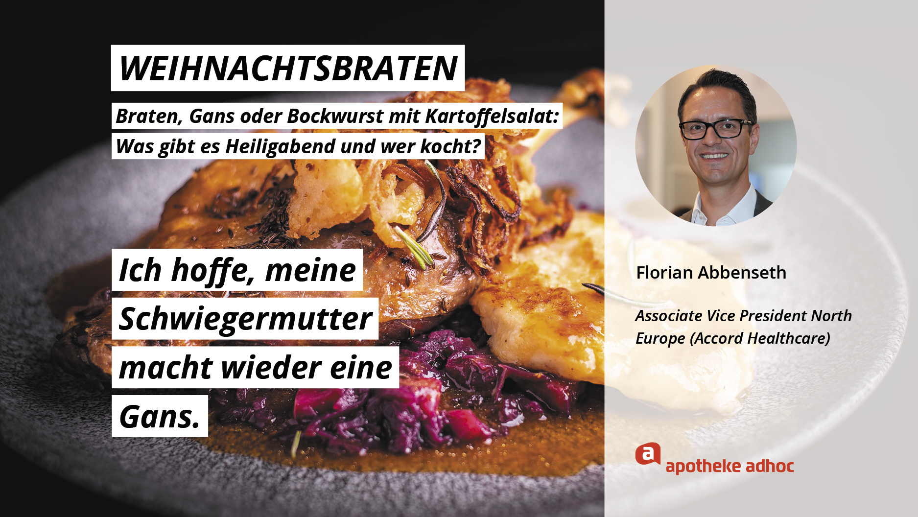 Weihnachten ist das Fest der Liebe – und der Weihnachtsmenüs. Hier verraten die Pharma-Promis, was bei ihnen Heiligabend auf den Tisch kommt und wer bei ihnen in der Küche steht.
