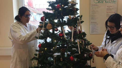 Oh du fröhliche Schulzeit. An der Bernd Blindow-Schule in Heilbronn haben angehende PTA im Chemie-Praktikum Reagenzgläser versilbert und einen Weihnachtsbaum geschmückt. Archivbeitrag vom 17.12.2018.