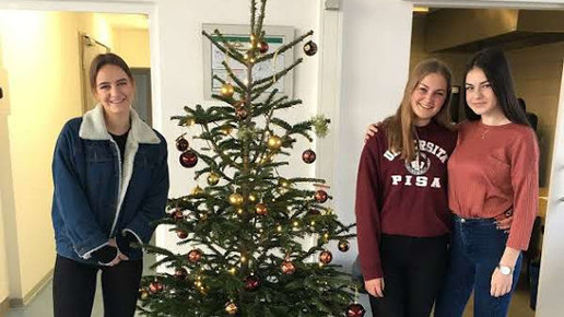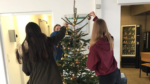 In der Aula in Heilbronn kümmerten sich Adina, Tanja und Kristin um einen weiteren Weihnachtsbaum. Foto: Bürkel