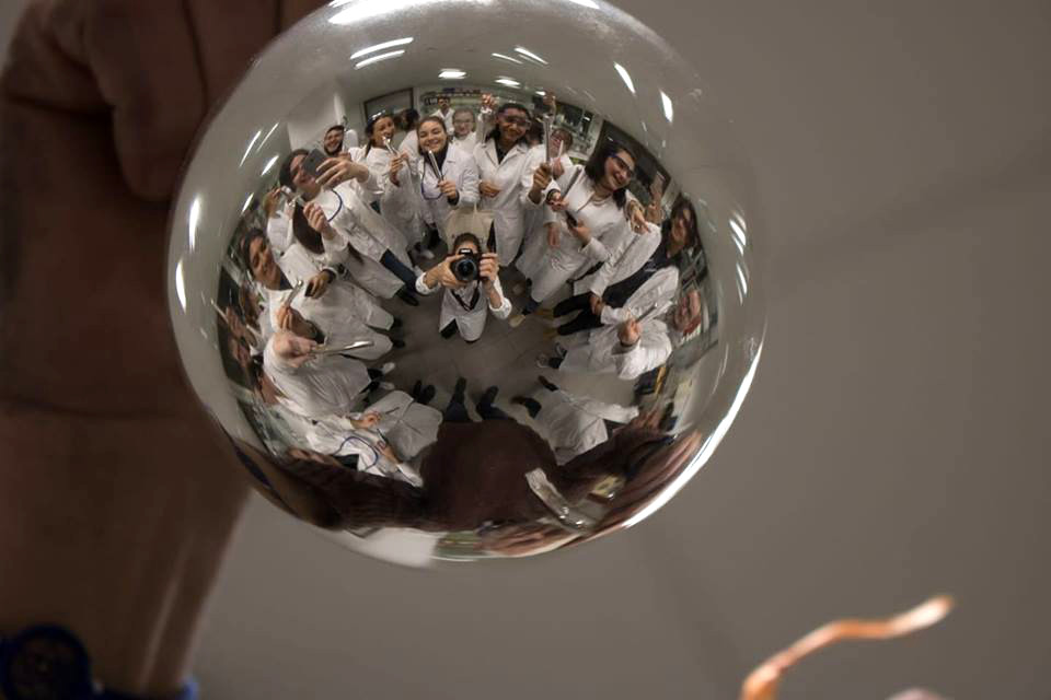 In der silbernen Kugel hielten sich die Schüler auf einem Klassenfoto der besonderen Art fest. Foto: Bernd Blindow-Schule Mannheim