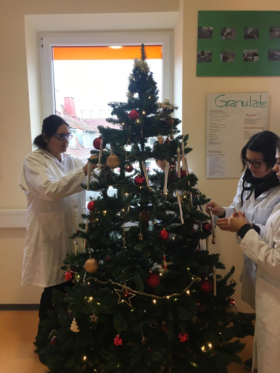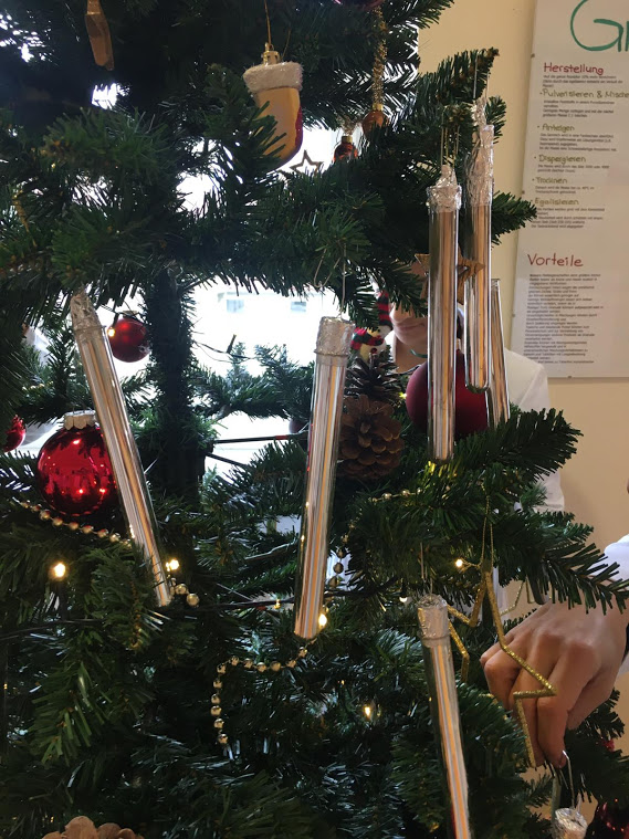 Oh du fröhliche Schulzeit. An der Bernd Blindow-Schule in Heilbronn haben angehende PTA im Chemie-Praktikum Reagenzgläser versilbert und einen Weihnachtsbaum geschmückt. Archivbeitrag vom 17.12.2018.