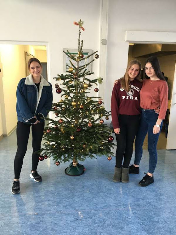 In der Aula in Heilbronn kümmerten sich Adina, Tanja und Kristin um einen weiteren Weihnachtsbaum. Foto: Bürkel