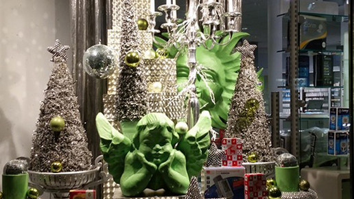 Das Schaufenster muss ein Hingucker sein, findet Apotheker Jürgen Lutsch. Der Inhaber der Linda-Apotheke in Kall investiert knapp 300 Euro pro Dekoration in seine Außenwirkung. An Weihnachten will er Kunden verzaubern. Seine Auslagen sind mit Engeln, Tannenbäumen und viel Glitzer gestaltet – in Silber und dem typischen Grün der Kooperation