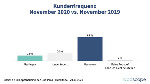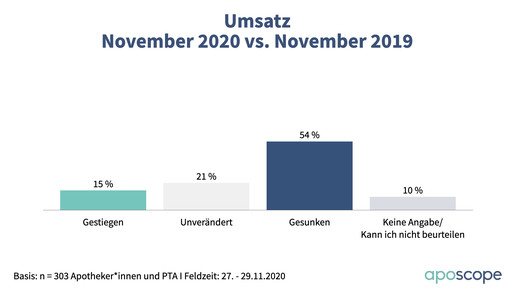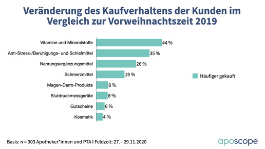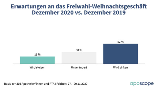 Kein Schlussspurt: Viele Apotheker und PTA fürchten, dass das Weihnachtsgeschäft in diesem Jahr ausfällt. Das gilt für den OTC-Bereich, ...Grafik: aposcope