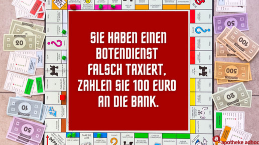 Im Apothekenalltag passieren mitunter kuriose Dinge. Teilweise erinnern die Ereignisse an das Gesellschaftsspiel Monopoly. Fallen euch noch mehr typische Monopoly Anweisungen ein?