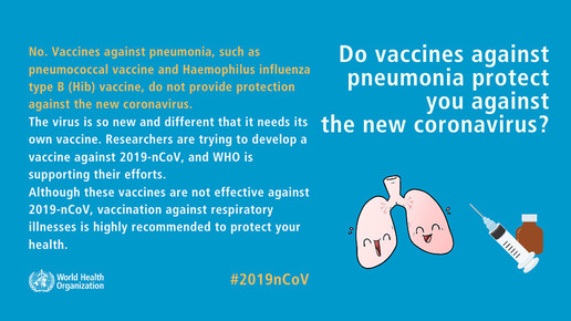 Die WHO klärt über Mythen im Zusammenahng mit dem Coronavirus auf. Zum Beispiel wird das Gerücht zerstreut, eine Grippeimpfung schütze auch vor dem neuen Coronavirus.