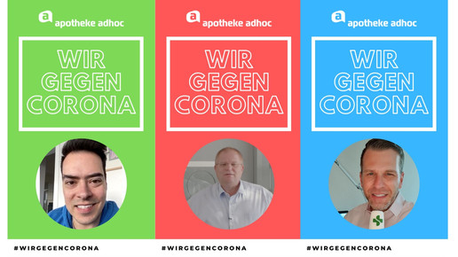 Die Initiative „WIR GEGEN CORONA“ gibt täglich einen kurzen Einblick, wie in den Apotheken mit der Krise umgegangen wird. Jetzt mitmachen und Selfie-Video einschicken! Zur gesamten Playlist geht es hier.