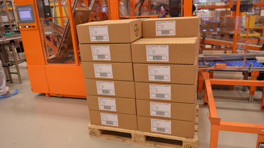 Palettenweise gehen volle Kartons vom Band.Foto: Elke Hinkelbein