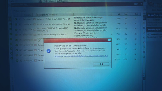 Der Heilberufsausweis (HBA) von Inhaber Dr. Jochen Krill läuft Anfang November aus – doch Probleme hat er heute schon. Wenn er versucht ein E-Rezept zu quittieren, bricht der Signiervorgang ab, der für einige Verordnungen notwendig ist. / Dermanostic hat mit Terminals in dm-Märkten in Apotheken für Stirnrunzeln gesorgt. Im Mittelpunkt der neuen dm-Kooperation stehe „das Wohl der Menschen – nicht der Wettbewerb zwischen Versorgungswegen“, sagt eine Dermanostic-Sprecherin. / Der Inhaber der Brunnen-Apotheke in Wiesbaden musste seine ablaufende SMC-B (Security Module Card Typ B, Institutionsausweis) erneuern, ihm fehlt ein Siegel. / Die Sanacorp investiert weiter in ihre Niederlassungen. Für 20 Millionen Euro wird das Vertriebszentrum in Stralsund modernisiert. Heute gab es den Spatenstich für einen kompletten Neubau.