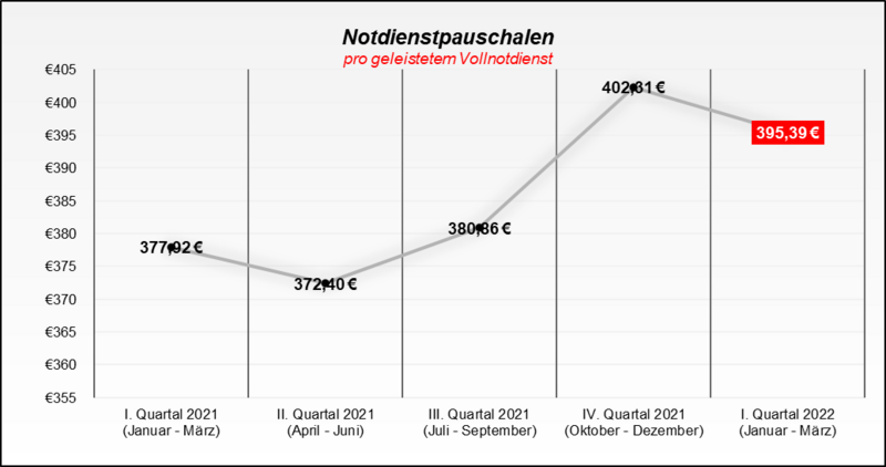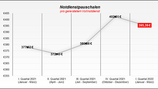 Die Apotheken erhalten für jeden im ersten Quartal geleisteten Notdienst 395,39 Euro aus dem Nacht- und Notdienstfonds. Damit liegt die Pauschale zwar leicht unter dem Vorquartal (Q4/21: 402,61 Euro), aber immer noch über dem Durchschnitt des Vorjahres. Der NNF überweist die Pauschalen am Ende der Woche direkt an die Apotheken.
