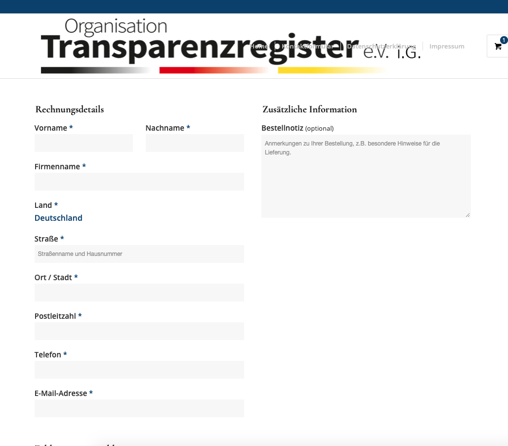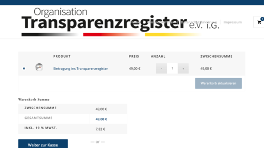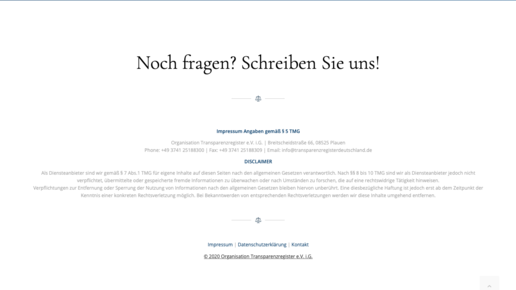 Verlinkt wird auf die Website www.TransparenzregisterDeutschland.de; hier kann für 49 Euro eine Eintragung bestellt werden. Außerdem gibt es den Hinweis auf eine angeblich „verschärfte Meldepflicht seit Januar 2020“: Seit Jahresbeginn müssten Unternehmen (Kapital- wie Personenunternehmen) nicht mehr nur die wirtschaftlichen Berechtigten benennen sowie die Art und den Umfang des wirtschaftlichen Interesses, sondern beispielsweise auch die Staatsangehörigkeit. „Passiert dies nicht, drohen Bußgeld-Strafen.“