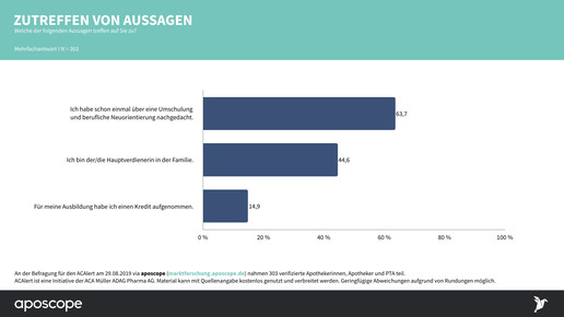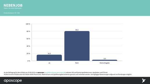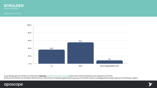 An der Umfrage für den ACAlert am 29. August 2019 via aposcope nahmen 303 verifizierte Apothekerinnen, Apotheker und PTA teil. ACAlert ist eine Initiative der ACA Müller ADAG Pharma AG.