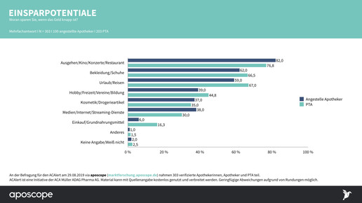 Wenn das Geld knapp wird, sparen die meisten an Freizeitaktivitäten wie Ausgehen, Kino, Konzerten oder Restaurantbesuchen. Auch Bekleidung und Reisen stehen oben auf der Streichliste, es folgen Hobbys, Kosmetik und Medien/Streamingdienste. Wiederum besorgniserregend: 16,3 Prozent der PTA gaben an, bei Einkauf/Grundnahrungsmitteln zu sparen, wenn das Geld knapp ist.