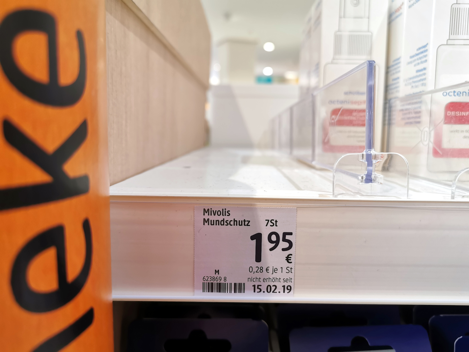In Berlin können nach Angabe von Apothekern bestimmte Masken derzeit nicht beim Großhandel bestellt werden. Die Nachfrage nach Mundschutz liege seit einer Woche über dem Zehnfachen des normalen Werts, bestätigt ein Sprecher von Phoenix. Der Mannheimer Großhändler hat bereits neue Ware geordert. Einige Apotheken sorgen einer weiter steigenden Nachfrage bereits vor und bevorraten sich mit noch verfügbaren Schutzmasken oder geben nur noch begrenzte Mengen ab. Vor allem in Bahnhöfen und an Flughäfen ist die Nachfrage von Reisenden groß. Auch bei der Drogeriekette dm sind die Fächer leer und wird auf Nachschub gewartet.