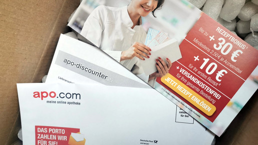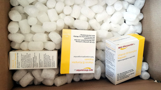 Um den neuen Service zu testen, bestellen wir Produkte im Wert von 16 Euro. Es handelt sich um drei Packungen Vitamin B12 Komplex als Eigenmarke von Apo-Discounter. Versandkosten gibt es nicht, weil der Auftragswert bei mehr als 15 Euro liegt.