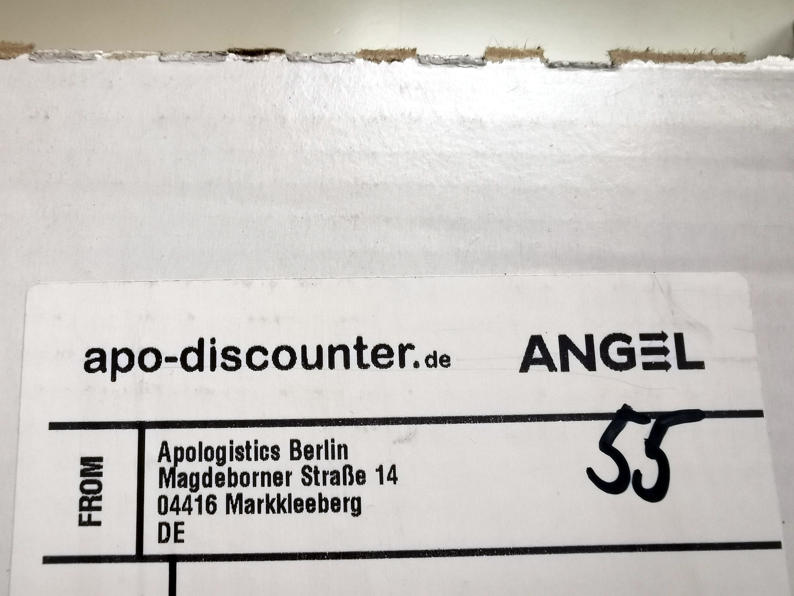 19.42 Uhr – Es klingelt. Der Fahrer übergibt den weißen Karton mit rotem „Apo“-Logo. Er spricht kein Deutsch und kann uns nur mittels Übersetzungsprogramm auf seinem Handy mitteilen, dass er nur als externer Fahrer für „Agel“ tätig ist. Welche Stationen unser Päckchen auf seinem Weg zurücklegt hat, kann er nicht sagen.
