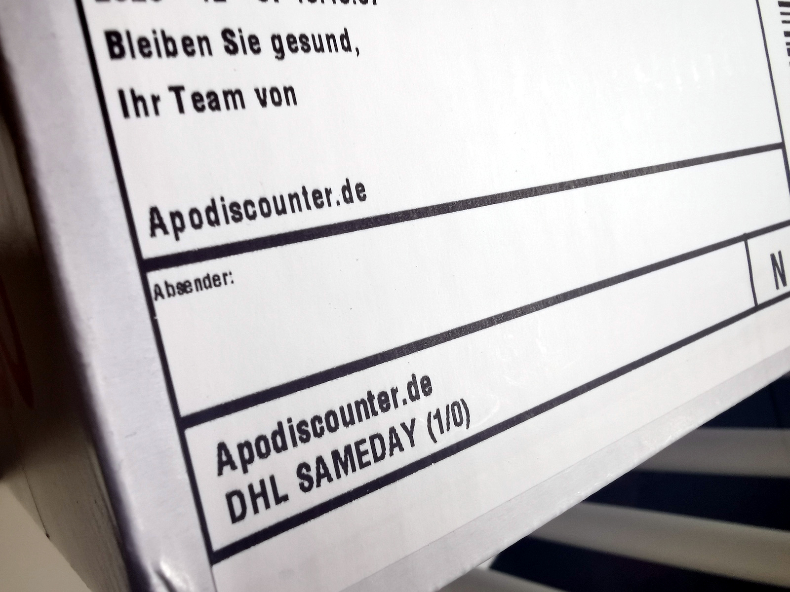 11.49 Uhr – „Ihre Bestellung wird bearbeitet“, meldet Apo-Discounter per Mail. Noch immer wissen wir nicht, ob wir wirklich noch heute damit rechnen können.