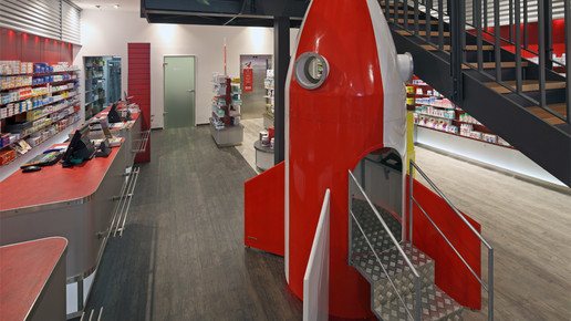 Ein riesiger Verkaufsraum mit Freitreppe, ein Wellnessbereich, Massagekabinen, eine Kinderbibliothek und eine Spielrakete – die Mega-Apotheke in Berlin Waltersdorf hat ihrem Namen alle Ehre gemacht. Doch das 2010 gestartete Projekt hat nie richtig funktioniert – auch und vor allem weil der nahe gelegene Flughafen BER bis zum heutigen Tag nicht eröffnet hat. 2014 zog Apotheker Frank Lietzmann die Reißleine. Es folgte ein erbitterter Streit mit der Deutschen Apotheker- und Ärztebank (Apobank).