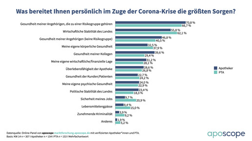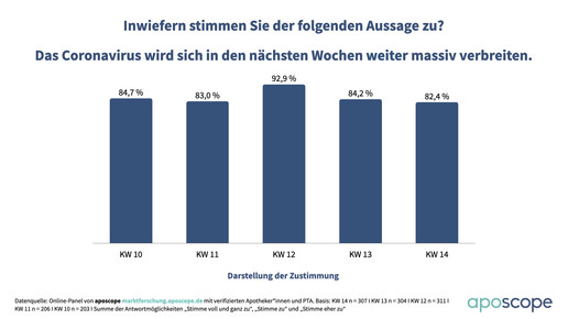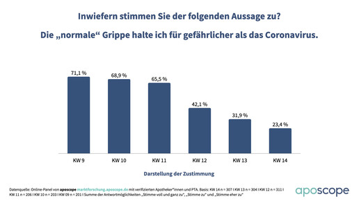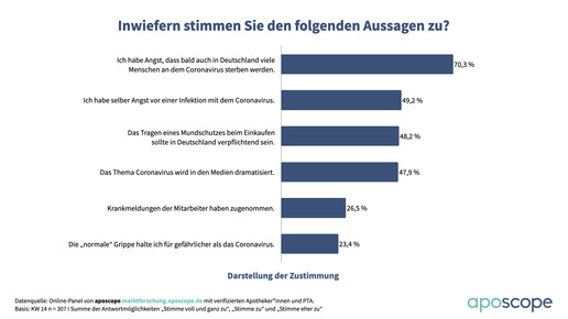 Welche Maßnahmen die Kollegen bereits umgesetzt haben, wurde wieder in der aktuellen aposcope-Umfrage erfasst. Spannend ist die sich verändernde Wahrnehmung der Bedrohung. Das gilt einerseits für den Grippe-Vergleich, mittlerweile aber unter wirtschaftlichen Gesichtspunkten. Fast jeder dritte Inhaber bangt um die Zukunft seiner Apotheke, auch die Angestellten machen sich Sorgen.