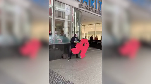 Das Problem: Spahn hatte schon am Dienstag, also zwei Tage vor der MV, bekannt gemacht, dass er der EU versprochen hat, den in Brüssel als störend empfundenen Passus zu streichen. Und zwar in eben jenem in Entstehung befindlichen Gesetz, zu dem die Apotheker am Donnerstag ihre Stellungnahme besprechen wollten. Ein anonymer Aktivist machte seinem Ärger über dieses böswillige Timing Luft, indem er mit Spahn-Maske verkleidet recht mühevoll ein Apotheken-A kleinschlug. Die Aktivisten von #rettedeineapotheke waren zufällig in der Gegend und haben das Ganze gefilmt. Die ABDA drinnen bleibt bei ihrem Standpunkt.