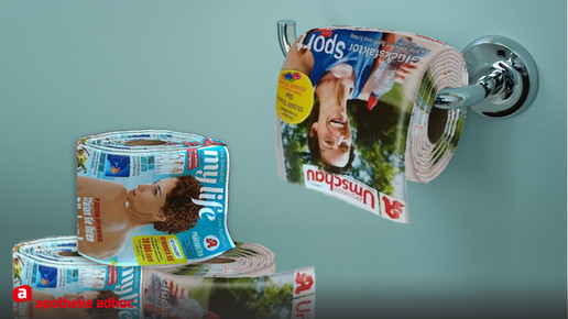 In diesem Fall regelt die Nachfrage das Angebot. Denn aus Gründen, die niemand kennt, ist Toilettenpapier gerade besonders gefragt. Und weil Apotheker nicht nur fürsorgliche Heilberufler, sondern auch findige Kaufleute sind, reagieren sie auf das Marktgeschehen. Für die sonst so gefragten Apothekenzeitschriften gibt es jetzt eine alternative Verwendung.
