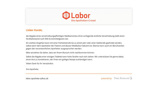 Und mit Prozessen geht es weiter: Ein Apotheker aus dem schönen Sachsen-Anhalt hat einen Dämpfer hinnehmen müssen, was sein Geschäfte über die Plattform Amazon angeht. Denn aus Sicht des Landgerichts Dessau-Roßlau müssen erst ein paar Datenschutzfragen geklärt werden. Und überhaupt: Sind 10.000 Apotheker zusammen nicht stärker als Amazon?