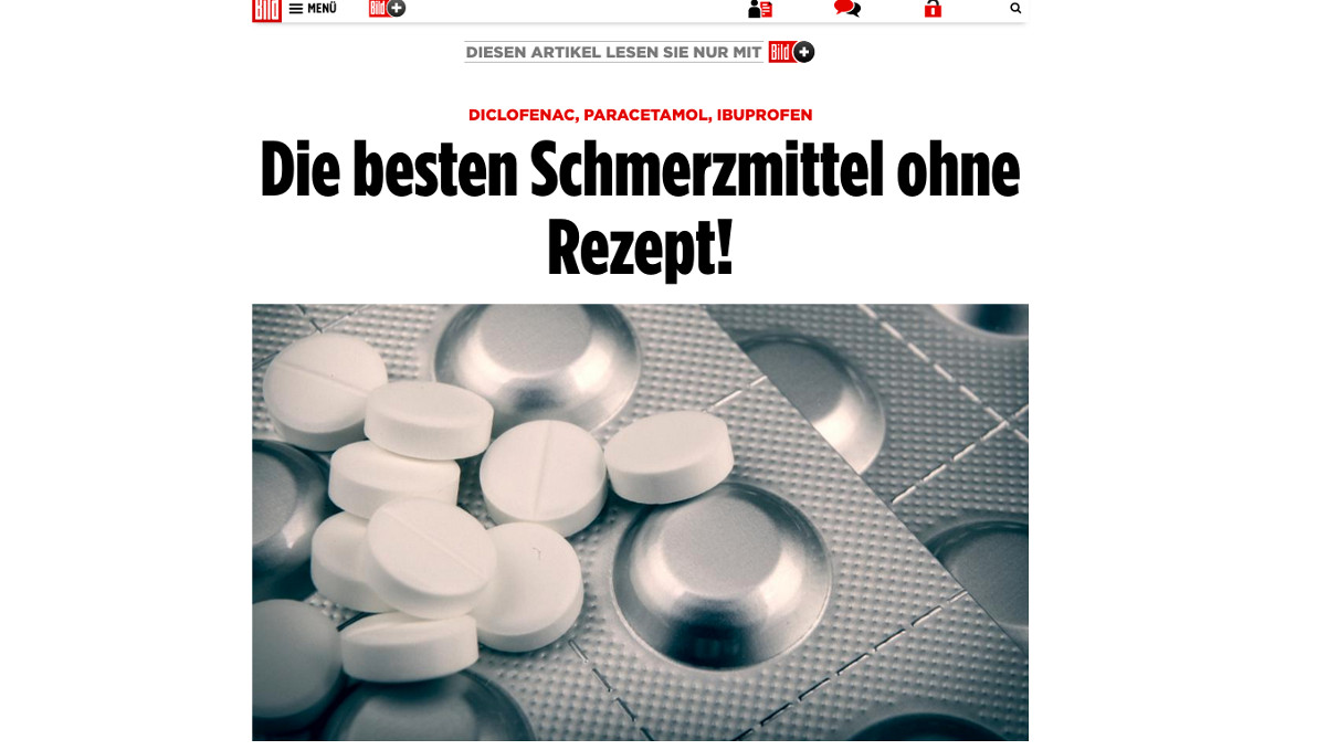 Echte Pharmazie-Expertise hat die Bild-Zeitung bewiesen: Ibuprofen wirkt laut dem großen Schmerzmittelcheck schon nach 390 Minuten. Sechseinhalb Stunden?! Schmerz lass nach. Wir hätten gern mehr erfahren, aber die Beratung brach an dieser Stelle ab. Wenn Sie mal die Beratung abbrechen wollen, weil der Kunde ein veschreibungspflichtiges Arzneimittel ohne Rezept haben möchte, haben wir hier ein Rezept für Sie.