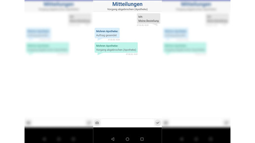 Ähnlich aufgebaut ist die Apozept-App: Auch hier laufen Anfragen unter dem Status „Bestellung“. Auch hier haben wir eine Anfrage an eine Apotheke via Chat gesendet – dieses Mal für ein verschreibungspflichtiges Medikament. Die für den Test ausgewählte Apotheke gehörte zu den schnellsten – bereits nach 3 Minuten erhielten wir eine Antwort. Die ebenfalls getestete Mohren-Apotheke in München reagierte ähnlich schnell, nämlich nach nur 10 Minuten. Allerdings zeigte uns die Benachrichtigung, dass der Vorgang abgebrochen wurde. Nach telefonischer Rückfrage konnte sich die Apothekerin diesen Verlauf nicht erklären: „Wir haben die App und unser E-Mail-Konto auf einem Tablet. Immer wenn eine Mail reinkommt, gibt es ein Geräusch und wir schauen möglichst direkt. Aber ihr Vorgang ist nicht dabei.“