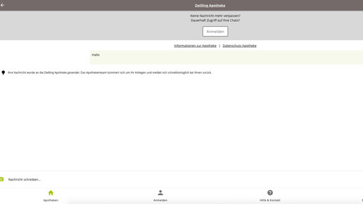 Sie bekomme regelmäßig Bestellungen via E-Mail oder App. Warum unsere Bestellung nicht dabei war, sei ungewiss. Aber wenige Minuten später tauchte bei uns eine Benachrichtigung im Chatfenster auf: „Wir haben vorhin telefoniert, hat sich erledigt“. Woran es jetzt gelegen hat, wurde nicht mehr aufgeklärt. Über die Callmyapo-App haben wir ebenfalls eine Apotheke nach der Verfügbarkeit eines verschreibungspflichtigen Medikamentes gefragt. Auf eine Antwort warten wir heute noch.