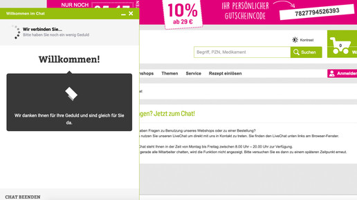 Immer mehr Kunden wollen in Echtzeit mit Geschäften und Dienstleistern kommunizieren, auch viele Unternehmen setzen mittlerweile auf Chatfunktionen statt auf Callcenter. In Apotheken ist die Nachfrage nach Live-Chats bisher eher gering, nimmt aber stetig zu. Wir haben mehrere Apotheken und Live-Chat-Anbieter getestet – die Resultate fallen durchwachsen aus.