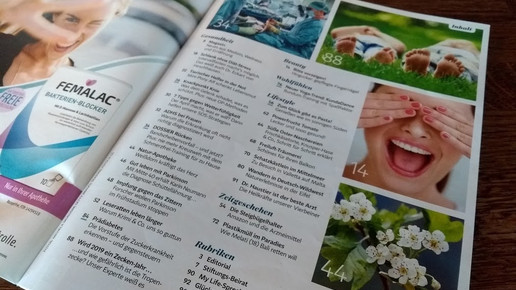 My Life kommt dagegen beim Inhaltsverzeichnis mit einer Seite aus. Die Artikel sind unterteilt in sechs Kategorien, darunter Gesundheit, Beauty und Lifestyle. Eine farbliche Unterscheidung der einzelnen Ressorts gibt es nicht.