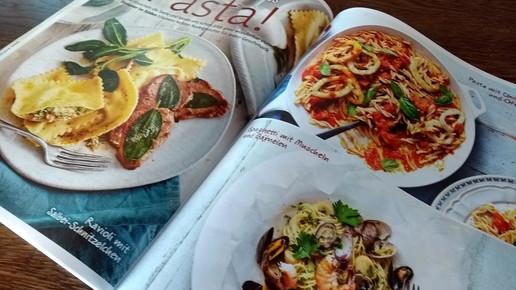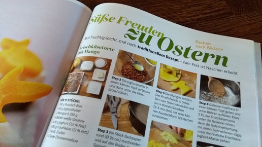 Burda kommt im Ressort „Genuss“ üppiger daher: Es gibt Nudeln; präsentiert werden sechs Rezepte – zunächst die Fotos und danach folgen in Frauenzeitschrift-Manier die Rezeptspalten. Im Anschluss folgt ein kurzer Artikel über Tomaten, bevor es mit der Völlerei weitergeht: mit „süßen Freuden zu Ostern“ und Backrezepten.
