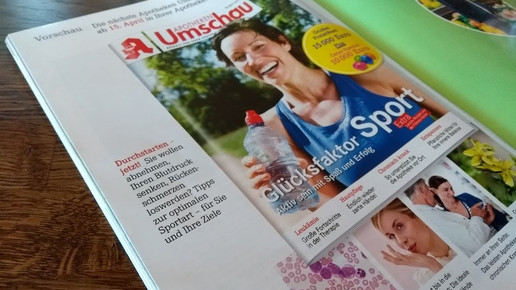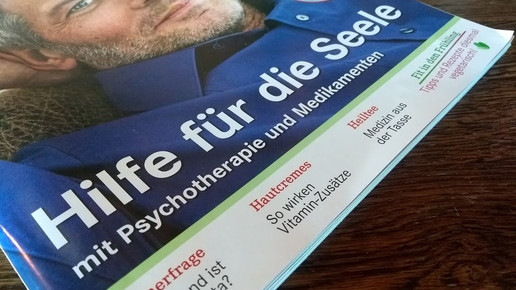 Die Umschau macht mit einem Artikel über Psychotherapie und Medikamente auf. „Hilfe für die Seele“, titelt das Blatt. Auf neun Seiten wird über Therapiemöglichkeiten aufgeklärt. Zu Wort kommen ein Apotheker, eine Psychotherapeutin ein Forscher und eine Patientin.