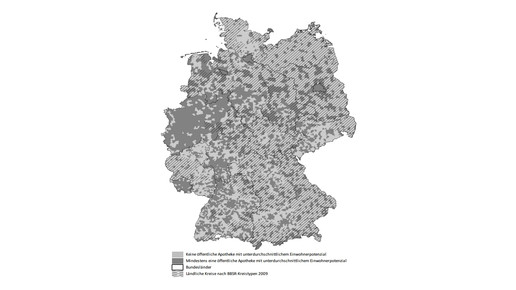 Das Prinzip von Angebot und Nachfrage gilt auch im Apothekenmarkt – und so verteilen sich die Apotheken auf den ersten Blick erstaunlich gut im Land: Laut einer Studie des Thünen-Instituts für Ländliche Räume haben Apotheken in dünn besiedelten Regionen sogar mehr Kunden als in Städten. Vor Ort gibt es allerdings große Unterschiede: Überall in Deutschland haben mehr als 40 Prozent der Apotheken ein suboptimales Kundenaufkommen – Schließungen sind wahrscheinlich.
