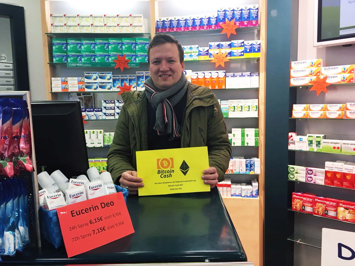 Die Besitzer der Kryptowährung können ihren Reichtum inzwischen auch in reale Güter wandeln. Gar nicht so wenige Händler akzeptieren die Währung: vom Onlinegiganten bis hin zum kleinen Café. Seit wenigen Tagen können auch Kunden der Düsseldorfer Neon-Apotheke mit Bitcoin Cash und Ethereum zahlen.