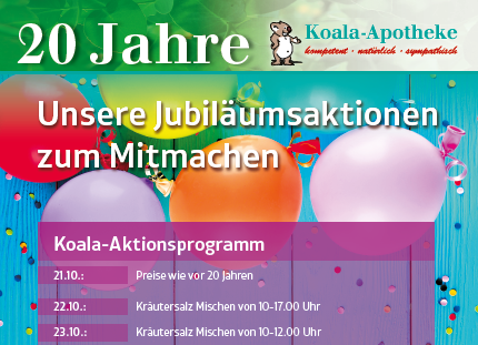 Zunächst wollen sich Eder und sein Team ohnehin auf die Feierlichkeiten der kommenden Tage konzentrieren. „Gemeinsam mit dem Center haben wir ein großes Programm auf die Beine gestellt“, zeigt sich der Apotheker vorfreudig. Für Kinder werde ein Kräutersalz-Mischen in der Koala-Apotheke angeboten. Zudem wird mit einer Minigolfanlage die Geschicklichkeit der Kunden herausgefordert. Und am letzten Tag der Jubiläumsfeier wird Eder zum Rosenkavalier: „Dann verteile ich die Blumen an unsere Kunden und bedanke mich für die tollen 20 Jahre!“