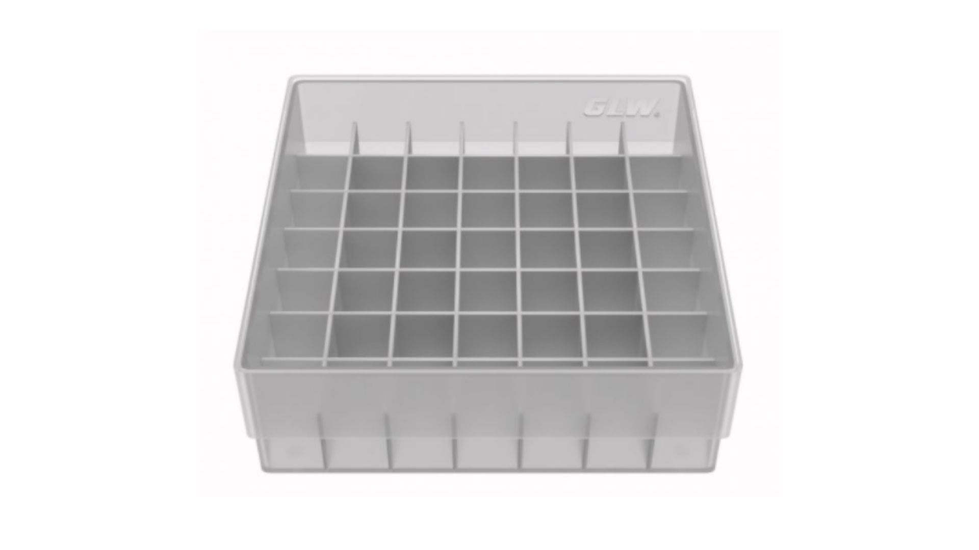 Für kleinvolumige Durchstechflaschen stehen auch fertige Lagerungsboxen zu Verfügung. Unternehmen wie GLW Storing Systems bieten Lösungen zur Lagerung von Vials in verschiedenen Größen und Höhen an. Die kleinsten Boxen bieten Platz für Vials à 4 bis 6 ml. Auch der Biontech-Impfstoff kann sicher in den sogenannten Kryoboxen gelagert werden. Der Durchmesser der abgeteilten Kammern beträgt bei dem Modell B47 16,5 mm, passgenau für ein Fläschchen. Insgesamt haben 49 Vials Platz. Eine Box kostet unter 5 Euro. Besonders praktisch: Die Kryoboxen sind in verschiedenen Farben erhältlich. Somit können die Vakzine eindeutig gekennzeichnet einsortiert werden. Comirnaty könnte beispielsweise die Farbe Grün erhalten. Die Durchstechflaschen von AstraZeneca und Moderna sind größer. Auch hierfür bietet das Unternehmen eine passende Lageroption an. Die Serie B68 ist passend für die etwas größeren Impfstoffbehältnisse.