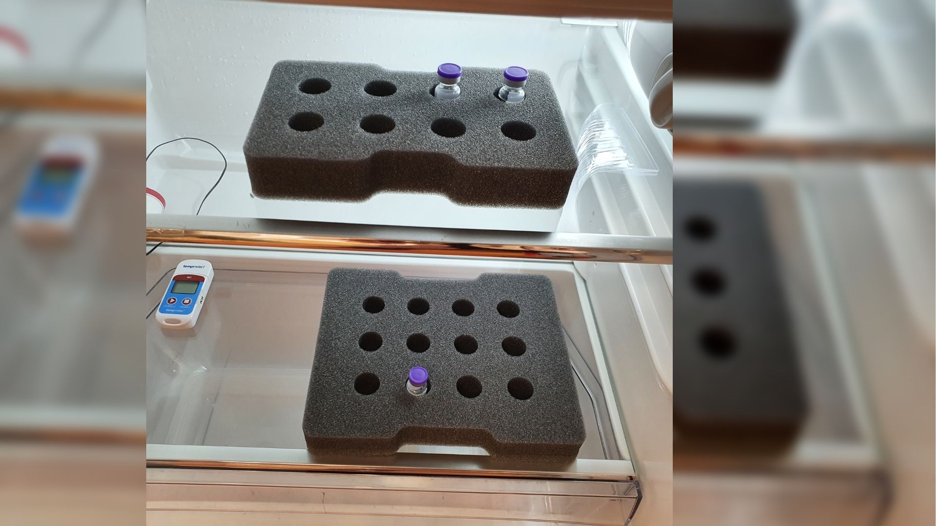 In der Berliner Nordring Apotheke musste Filialleiterin Silke Peters schnell handeln, als der Lieferant die Schaumstoffhalterungen der Vials wieder mitnahm. Zunächst baute ihr Sohn eine Konstruktion aus Lego. „So viele Vials im Kühlschrank lagern, da muss nur eines umfallen und es entsteht ein Domino-Effekt. Am Ende muss ich die Durchstechflaschen dann alle wegschmeißen.“ Doch bei der Lego-Lösung sollte es nicht bleiben: Nach dem Motto „Not macht erfinderisch“ kontaktierte die Apothekerin ein Büro für Architektur und Modellbau. „Normalerweise stellt die Firma Architekturmuster her – nun kam mit meinem Auftrag eine neue Aufgabe hinzu.“ Peters übermittelte die Maße der Vials und freute sich auf das erste Muster der Schaumstoffhalterung. „Am gleichen Tag erhielt ich noch den Prototypen. Da noch nicht alles perfekt passte, gab ich nochmal Rückmeldung mit Verbesserungsvorschlägen und erhielt gestern Abend den verbesserten Entwurf.“