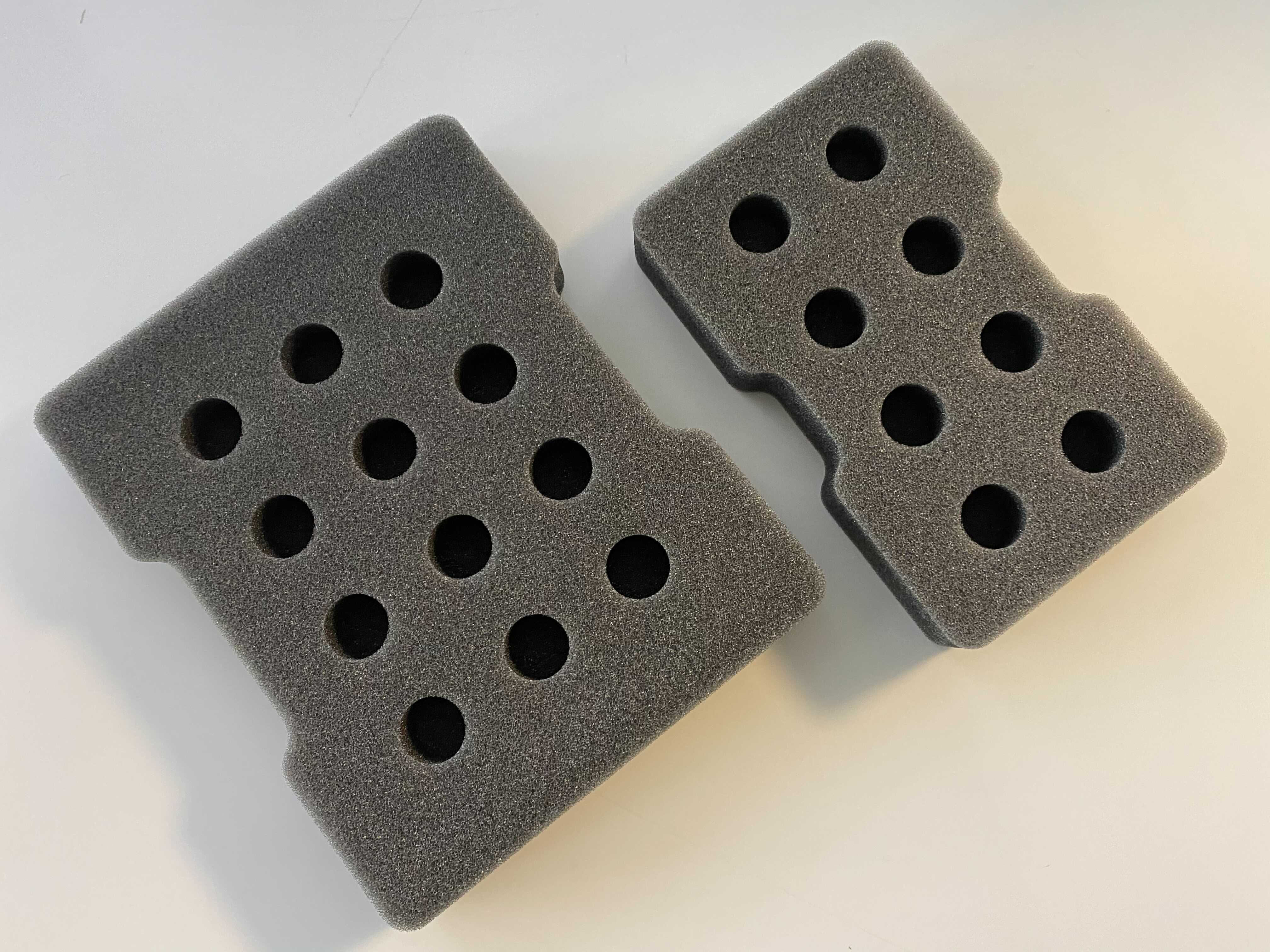 Tatsächlich haben sich schon Apotheken bei Werk 5 gemeldet. „Mit solchen Anfragen haben wir nicht gerechnet“, sagt eine Sprecherin. Apotheken gehörten zu einem völlig neuen Kundenkreis. Die Firma könne mit dem Laser Schaumstoff individuell zuschneiden. Für die Biontech-Vials werden momentan zwei Größen mit jeweils zwölf oder acht Plätzen (11 beziehungsweise 9 Euro netto) angeboten. Zwei Schaumstoffmatten werden verklebt, damit die Dicke 5 cm erreicht und der Impfstoff ausreichend geschützt ist. Die Herstellung sei schnell möglich. Die Halterungen sind schockabsorbierend, isolierend und der Impfstoff damit optimal für den Transport geschützt.