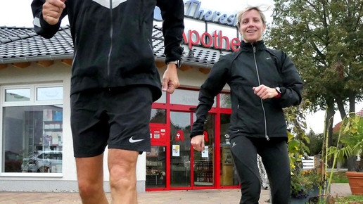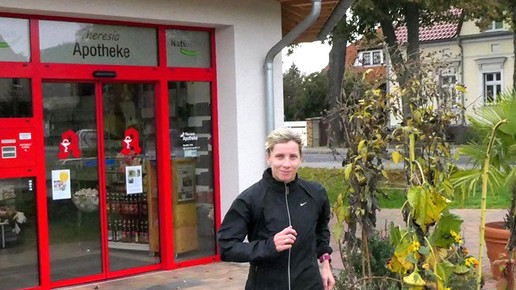 Als sie schließlich losliefen, kündigte sich nach einer Runde bereits ein weiterer Kunde an. Nachdem dieser versorgt war, ging es weiter. Nach vier Kilometern kam Weigel wieder an der Apotheke vorbei und sah bereits, dass ein neuer Kunde vor der Tür stand. Bevor dieser die Klingel betätigen konnte, joggte sie bereits heran.