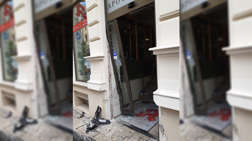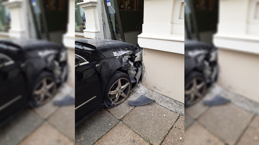 Es passierte um die Mittagszeit: Eine Mitarbeiterin der Apotheke räumte grade die Regale in Eingangsnähe ein und zeichnete die Ware aus, als sie plötzlich aufschrie. Mit einem lauten Knall hatte sich ein 42-jähriger mit seinem Auto in der Tür der Apotheke verirrt. „Es handelte sich anscheinend um jemanden, der medizinische Probleme hat“, erklärt Neumann. Was genau dem Mann fehlte, weiß er jedoch nicht. Auf jeden Fall habe der Fahrer die Kontrolle über sein Auto verloren: Eigentlich muss an der Straßenecke abgebogen werden, der Mann jedoch fuhr schnurstracks geradeaus – mitten in den Eingang der Apotheke.