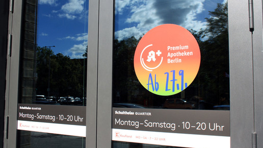 Wände aus Glasbausteinen dominieren das Bild, wer schon immer einen Blick in einen Kommissionierer werfen wollte, ist hier am richtigen Ort: Hinter einer Wand aus Glasbausteinen verbirgt sich ein fleißig arbeitender Automat. Neugierige Kinder, ob groß oder klein, werden hier ihre Freude haben. Die Premium Apotheke im Schultheiss-Quartier gehört zum Verbund von Heike Zweydinger, die in Berlin noch weitere Center-Apotheken sowie die „Apotheke 4.0“ betreibt.