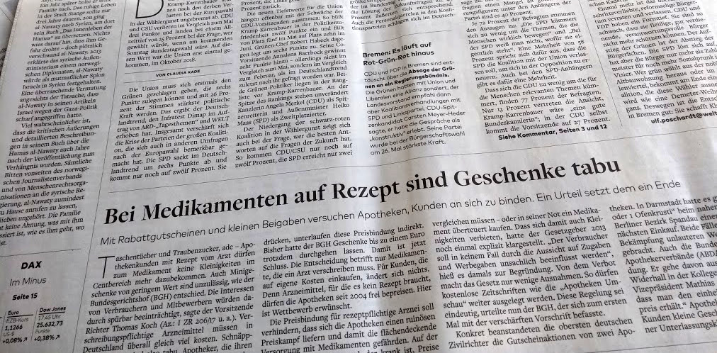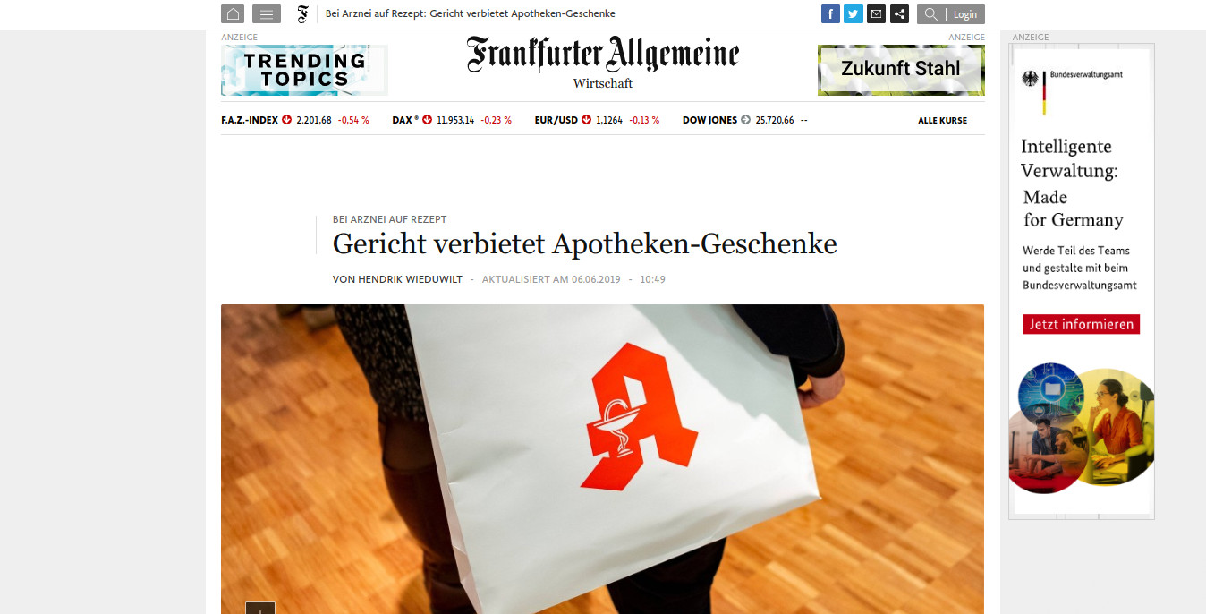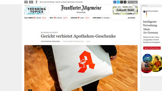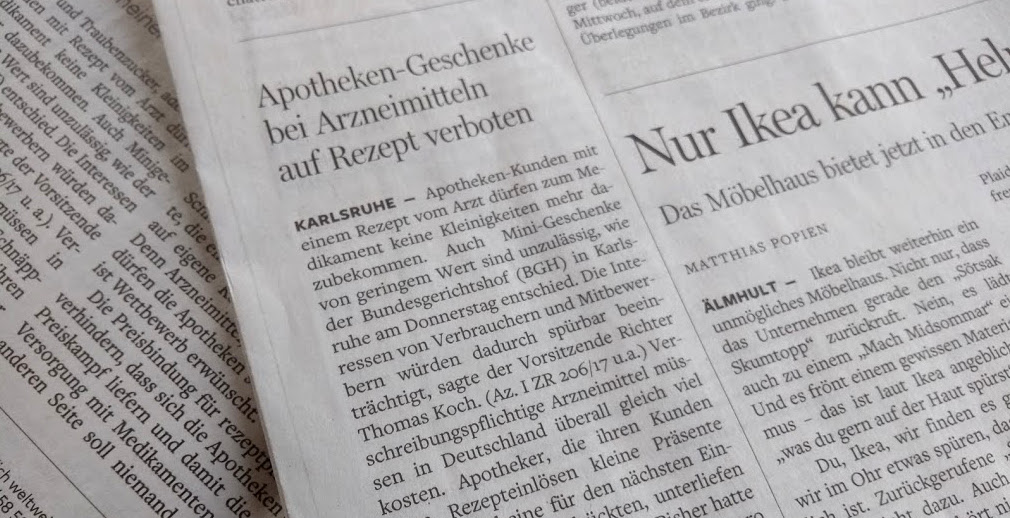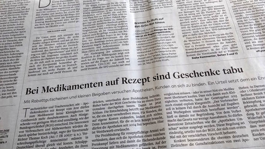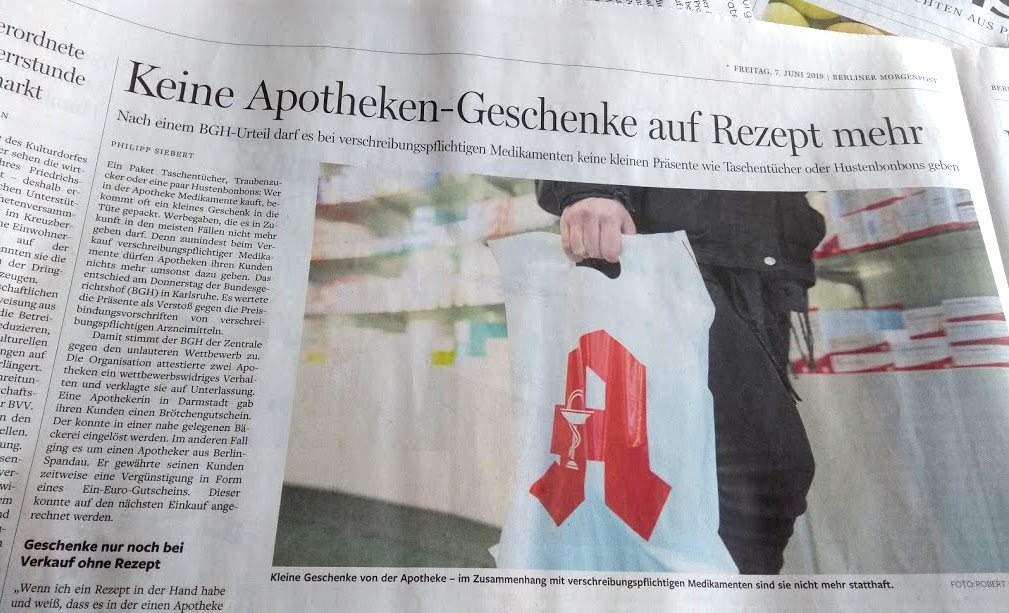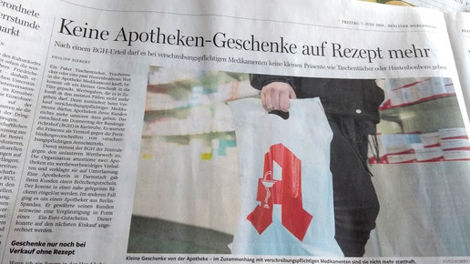 Geben Apotheken ihren Kunden beim Erwerb von Rx-Arzneimitteln geringwertige Werbegaben, verstoßen sie laut dem gestrigen Urteil gegen das Heilmittelwerbegesetz. Zahlreiche Zeitungen berichteten über die Entscheidung der Richter aus Karlsruhe. „Keine Apotheken-Geschenke auf Rezept mehr“ oder „Geschenke aus der Apotheke sind jetzt tabu“, lauteten die Überschriften.