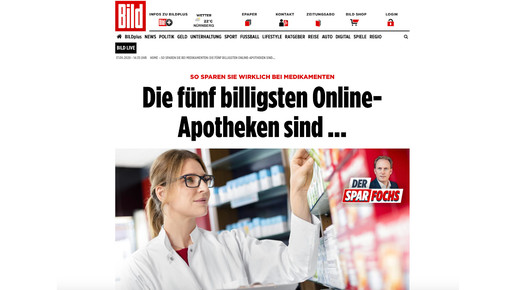 Apotheken sind für den Sparfochs (Bild-Redakteur Frank Ochse) ein wiederkehrendes Thema: Schon vor zwei Jahren lautete seine Botschaft: Kauft online, nicht in der Apotheke! Jetzt hat er für seine Leser die „fünf billigsten Online-Apotheken“ parat.
