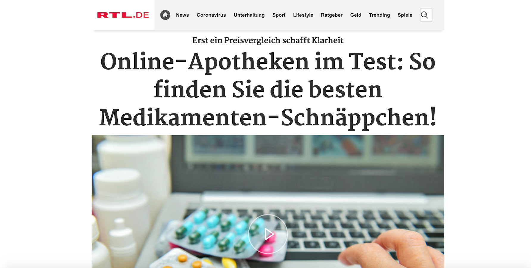 Und zeitgleich titelt RTL: „Online-Apotheken im Test: So finden Sie die besten Medikamenten-Schnäppchen!“ Erst ein Preisvergleich schaffe Klarheit.