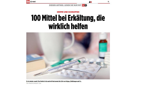 Männerschnupfen und Warentest sind gleich zwei Phänomene im Beitrag der BamS. Erst in der vergangenen Woche hatten Warentest und Pharmakritiker Professor Gerd Glaeske das Handbuch „Medikamente im Test“ samt Pillenampel auf den Markt gebracht. BamS stellte Glaeskes Top 100 der OTC-Präparate bei Erkältungsbeschwerden vor und zeigte, was wirklich gegen Schnupfen, Husten, Kopf- und Gliederschmerzen hilft. Der Preis-Check blendet pflanzliche Arzneimittel aus und bezieht sich auf Produkte, die in den Umsatzstatistiken von IMS relevant sind.