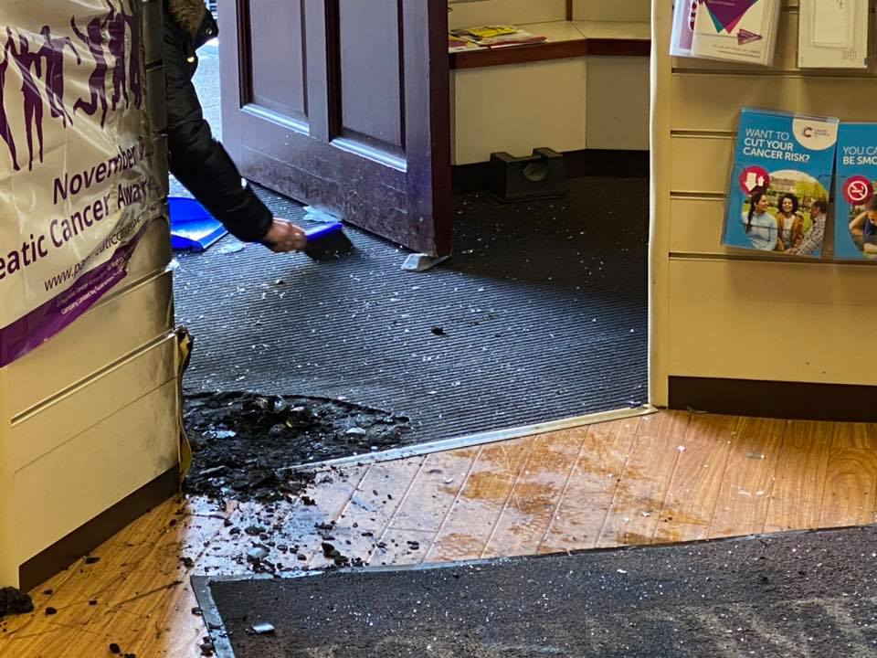 Die Bodenmatte ist freilich hin, weitere Zerstörungen blieben allerdings aus. Dafür hat das Feuer andere Spuren hinterlassen: „Das Hauptproblem ist der Ruß, der alles bedeckt“, so Smith. Für sie und ihre sechs Mitarbeiterinnen begann der Dienst deshalb am Freitag eine Stunde früher: Ab 8 Uhr begannen sie, die Spuren des Angriffs zu beseitigen – denn dass zwei Molotow-Cocktails in ihre Apotheke geworfen wurden, bedeutet nicht, dass die Inhaberin schließt.