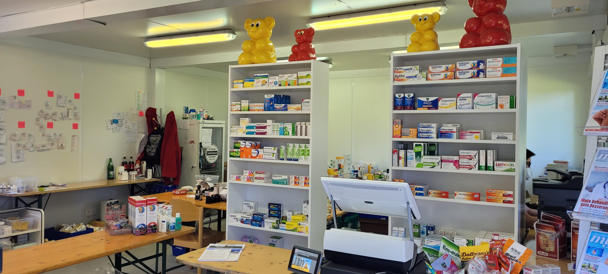 Für das Team bedeutet der Umzug ein Stück weit Normalität. „Wir freuen uns endlich wieder auf die Arbeit.“ So wurden im alten Container beispielsweise die Medikamente auf Bierzeltgarnituren „gelagert“ – heute finden sie wie gewohnt ihren Platz in den Schüben. Die Einrichtung wurde Göttling von einer befreundeten Apothekerin geschenkt, die ihre Filiale schließen musste.