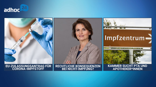 Der US-Pharmakonzern Moderna will die Zulassung für einen Corona-Impfstoff in der EU beantragen. Die Impfbereitschaft unter PTA ist nicht sehr groß. Die Landesapothekerkammer Rheinland-Pfalz sucht PTA und Apotheker*innen für die Impfzentren. Und die deutschlandweite Abgabe von FFP2-Masken kann sich noch verzögern. Diese und weitere wichtige Meldungen des Tages bei adhoc24.
