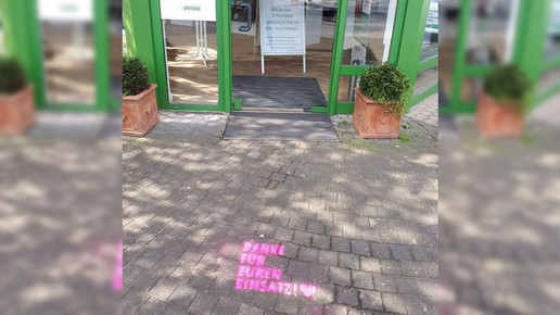 Vor dieser Apotheke gab es ebenfalls eine Kreide-Botschaft.Foto: Süd-Apotheke, Bocholt